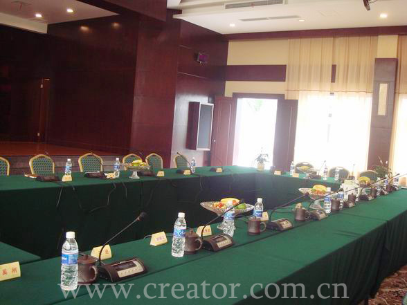 随着中国重庆陶然居建设社会主义新农村示范基地建设的发展,其中包括来自全国餐饮界人士和各级政府领导部门以及中央组织工作会议等在此举办多次。由于多方面的需要,经过严格考核,陶然居的所有会议厅及主要场馆全部采用了CREATOR快捷系列产品,满足了会议室的各种需求,提高了工作效率。其中, CREATOR快捷标准化同声传译会议系统的良好音质效果和整个系统的稳定可靠,得到了用户的肯定。其系统设备配置有:标准型数字化同传会议系统主机、推拉滑盖式主席单元、推拉滑盖式代表单元、会议系统译员机、红外语音发射主机、会议系统译员耳机、红外语音辐射面板、红外语音接收单元、接收单元耳机、红外接收单元充电箱等多套配置。