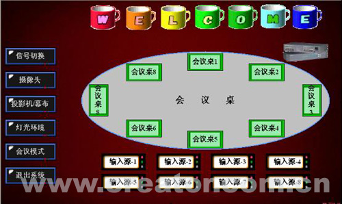 加上CREATOR快捷PGMII中央控制主机、AV0404、VGA0808信号切换系统、ST-7600C无线触摸屏以及CR-PWR8II型电源控制等一系列的高科技系统集成产品,更在高雅、简洁中增添了几丝现代化气息,在这样的一种氛围中商谈企业事宜,怎能不令人满意呢?下面我介绍一下CREATOR系列产品应用于和君会议室的主要功能: