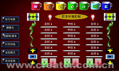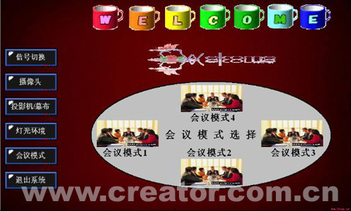 每一次会议的召开都伴随着不同的会议环境,CREATOR快捷为客户设计了不同会议模式的选择,可以根据不同的场所、人员和需求来存储一些会议模式。当我们在临时召开紧急会议的时候,只要我们点击事先存储的会议模式,那么就可以自动的切换信号、开启灯光等一系列的动作。