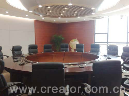 该公司多媒体培训室、报告厅、党政联席会议室三个会议室采用了CREATOR快捷全系列产品,共采用了CREATOR快捷中控PGM2+6500C两套,四系列会议系统三套,CREATOR快捷高速球四个,音视频信号切换矩阵AV-1616三台,电脑信号切换矩阵VGA-0808三台等一系列产品。