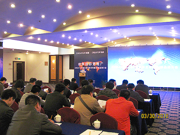 视界因你更宽广• CREATOR LED显示屏发布暨AV新品推介会(福州站)3月30日在阿波罗大酒店隆重举行。现场展示了CREATOR快捷最新研发产品,WiFi会议系统、WiFi触摸屏、SPRO-CON9000、 SPRO-CAV802等多款中控主机,CREATOR创高LED全彩显示屏是全场的焦点,其高清的显示效果为此次展会带来了精彩的画面展现。