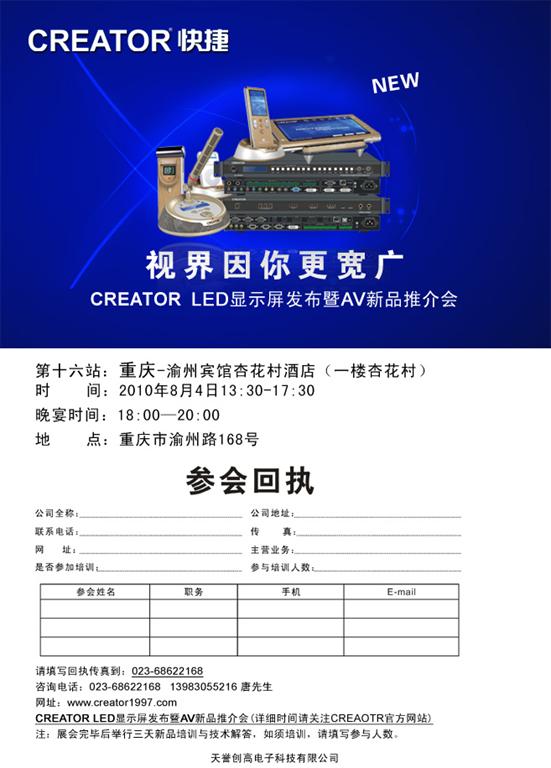 视界因你更宽广CREATOR LED显示屏发布暨AV新品推介会(重庆站)即将召开