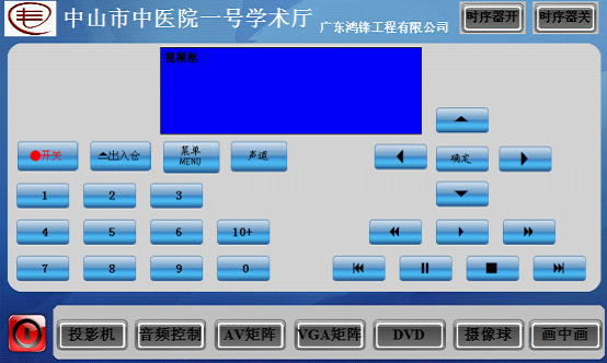 DVD界面所显示的按钮与遥控机上的按钮功能是同一样的功能;此界面的“视频框”是实现画中画所用!当在操作相应DVD功能,同时视频框则出现所执行的动作画面;(这是配合AV矩阵所实现的功能)