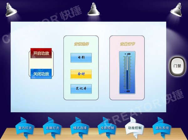 为全面配合PGMⅢ组网控制系统在市场中的广泛运用,引导客户群体准确、快速使用触屏对组网系统进行操控(适用于CR-WIFI G7,iPad, iphone触屏),针对政务系统、企事业单位及家庭影院等应用系统制作了下列操作界面实例图,更为直观地展示出了操作程序中的相应界面。