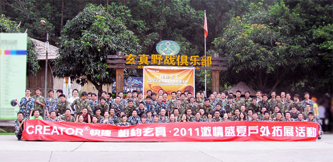 本次拓展活动首先是对所有人进行随机团队组建,根据队员人数共分成6个小组,依照教练组的要求在5分钟之内选定各队的队长,队名,口号,队歌以及队伍造型,该项目旨在强化所有人的适应能力、协作能力和团队意识。随后各队集结进行团队文化展示,犀利联盟队,雪豹队,十八罗汉等队纷纷闪亮登场,队名、口号和造型新奇而潮流,都凝聚着团队每个成员的智慧和心血。