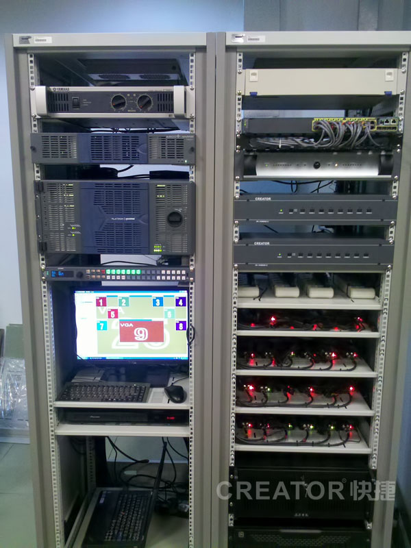 上左为设备机柜、上右图为CREATOR快捷中央集成控制设备。