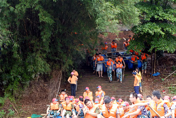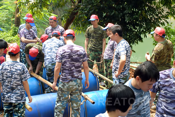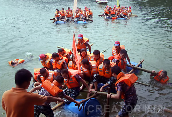 拓展活动包括团队建设、老虎猎人枪、荒岛大营救、信任坐和同心竞渡等项目。团队建设首先是小团队的组合、队名、口号和领导的选取,能充分发挥队员的创造力及想象力,增强学员的归属感。当然最给力的活动是荒岛大营救,在一个"荒岛"上,仅有可利用的油桶、竹杆和绳索,在规定的时间内去拯救人质,做一回英雄过过瘾!