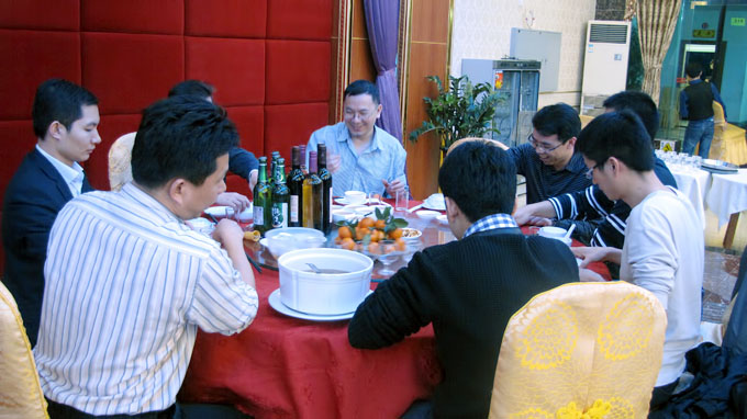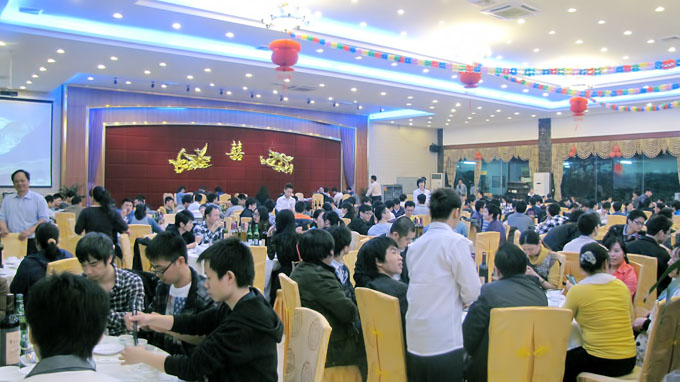 17点30分,天誉创高人陆续进入晚宴现场。晚宴现场高朋满座,天誉创高市场部、研发部、工厂共300多人参加了此次晚宴。18点30分晚宴正式开始,在天誉创高这片土地上耕耘了一年的天誉创高人齐聚在一起共同举杯,共享这一欢乐的时刻。