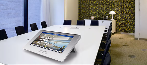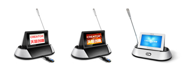 2)无纸化会议系统:采用光纤传输视频,音频,控制信号等高带宽多媒体会议主机。可以实现同传,讨论,投票,电子铭牌,远程视频会议,远程电话会议等功能;多种声场处理效果,反馈抑制,环境噪声动态消除,回声消除,DSP处理功能。光纤会议单元是一款具有8寸TFT液晶屏,分辨率800x480信息控制显示屏,6.5寸,分辨率800x480,显示姓名职位,背景可编程;支持主机远程视频会议,摄像球等视频源输入显示,实现多媒体会议。这也是本次展会的重点产品。