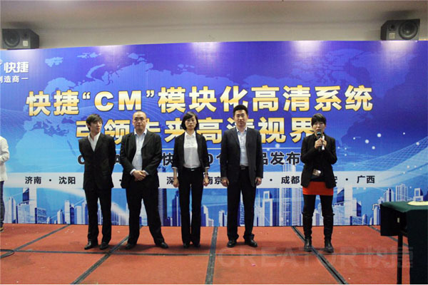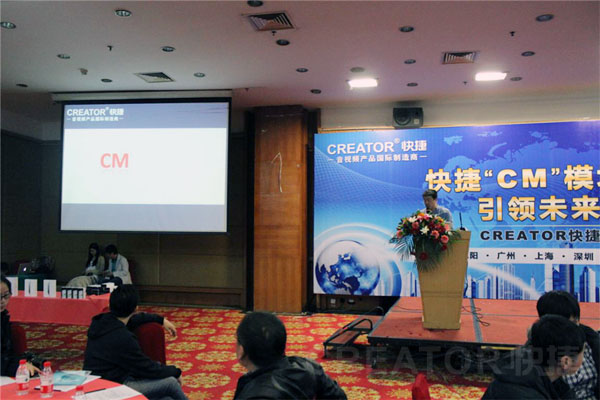 4月22日下午,"CM"模块化高清系统 引领未来高清视界——CREATOR快捷2013年新品发布会沈阳站在高登大酒店锦绣厅隆重举行。发布会上CREATOR快捷副总经理王国孟先生发表讲话并致答谢词。现场展示并讲解了CREATOR快捷最新研发的新品,"CM"模块化高清系统、光纤会议系统、WiFi无线会议摄像跟踪版、网络型中央控制系统等新品。