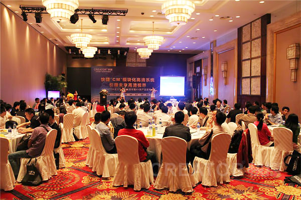5月17日下午,"CM"模块化高清系统 引领未来高清视界——CREATOR快捷2013年新品发布会武汉站在华美达光谷大酒店圆满召开。发布会上CREATOR快捷武汉平台经理何勇先生发表讲话并致答谢词,现场展示并讲解了CREATOR快捷最新研发的新品,"CM"模块化高清系统、光纤会议系统、WiFi无线会议摄像跟踪版、网络型中央控制系统等新品。