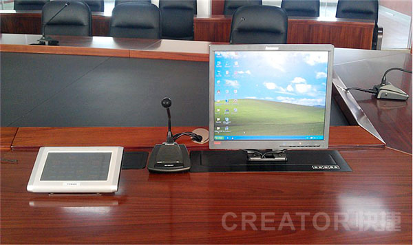 CREATOR设备: CR-PGMII可编程控制系统,AV,VGA矩阵,8路电源控制器CR-POWER8III,CR-M4101会议系统主机,CR-M4102/4B1主席单元/代表单元,CR-V1011高球摄像机,无线彩色触屏 CR-WirelessG7pip ,无线接收器CR-RFA。