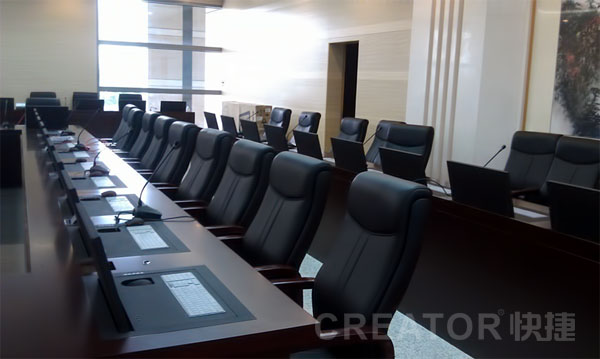 整个系统以中央控制器为核心。它以控制总线与各个设备相联接,接受操控者发出的控制要求,然后向各个延伸控制设备及被控设备发出控制指令。所有控制功能通过专用系统软件编程而成,具体控制可通过彩色液晶触摸屏或ipad实现。其操作界面根据用户的实际要求,设置得直观而易于理解(全中文、图形模块化)、操作。 在无线触摸屏操控下,通过中央集成控制系统将以上各子系统与整个会议环境有机的结合成为一个整体,实现了会议、调度的智能化管理。