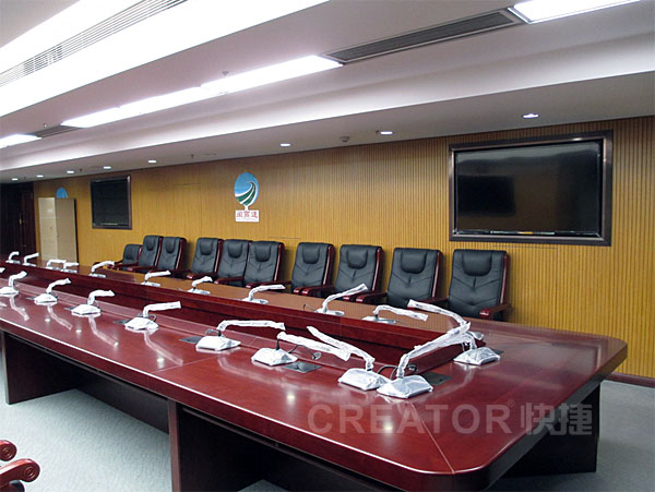 福建省高速公路企业会议室采用了CREATOR快捷智能会议系统,会议室主要由液晶电视显示系统、多媒体音视频信号源、音响和中央集成控制几大部分组成。现场配置了2个摄像机、视频终端、高清的蓝光DVD和3台高清电视机,配备一套CREATOR快捷中央集成控制主机PGMIII与无缝切换插卡矩阵VMAX1616、与会议系统主机更加轻松地控制会议室内的各种信号切换、摄像跟踪、高清信号切换、远程视频会议、高清电视机控制、DVD控制、设备电源控制以及录像机控制、大大提高了福建高速公路会议室的开会前的准备工作。