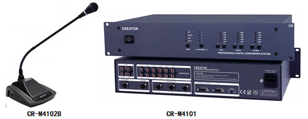 CR-M4101:智能数字会议控制主机,是实现与会议单元及PC管理的重要桥梁,通过面板的导航键盘,配合软件会议管理功能可以实现对所有会议功能进行集中控制。具有多种会议模式选择(发言人数选择、发言模式选择),超强的扩展功能,DSP的声音处理,采用均衡器模块,环境噪音抑制技术。
