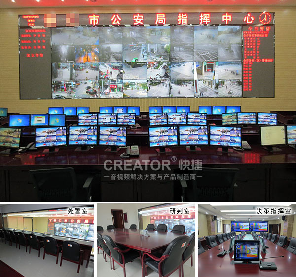 与此同时,该市公安局决策室、图像侦查室也由CREATOR快捷全面打造完成,CREATOR快捷,一站式系统解决方案的提供商,国际顶级产品制造商,通过CREATOR快捷"CM"模块化高清系统、数字化会议系统、网络化可编程控制系统将该市公安局指挥中心打造成为集会议、控制、大屏显示、信号处理、网络等为一体的大型智能化应急指挥平台,达到了视频会议智能化、人性化,系统操作简单、功能强大、扩展灵活、配置方便、集中控制,使音视频完美融合应用。